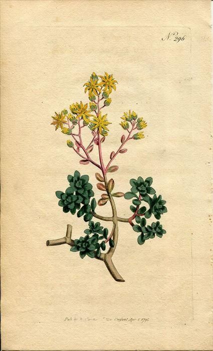 1795年 Curtis Botanical Magazine No.296 ベンケイソウ科 アイクリソン属 SEMPERVIVUM TORTUOSUM 多肉植物 curbm296