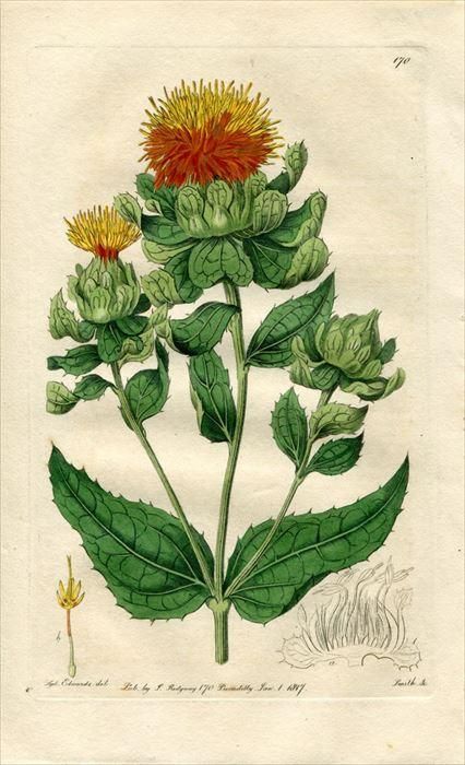 1817年 Edwards Botanical Register No.170 キク科 ベニバナ属 ベニバナ CARTHAMUS tinctorius edwbr170