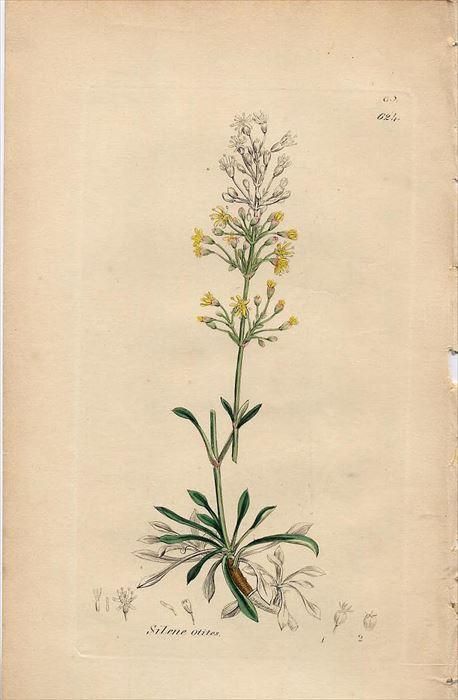 1840年 SOWERBY ENGLISH BOTANY 第2版 No.624 ナデシコ科 マンテマ属 Silene otites sowe624