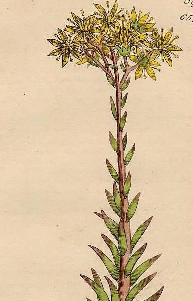 タイトルは「Sedum reflexum.」、現在使われている学名は「Petrosedum rupestre」、