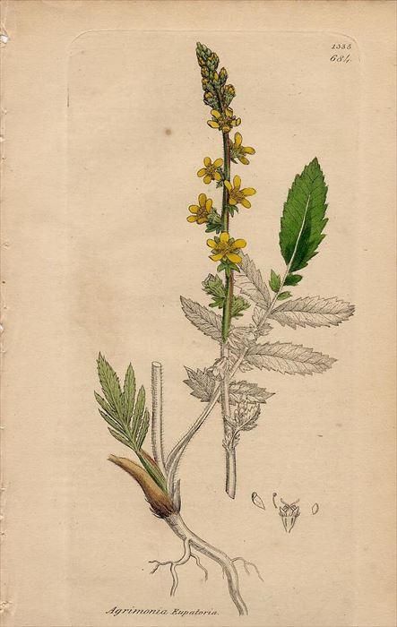 1840年 SOWERBY ENGLISH BOTANY 第2版 No.684 バラ科 キンミズヒキ属 セイヨウキンミズヒキ Agrimonia Eupatoria sowe684