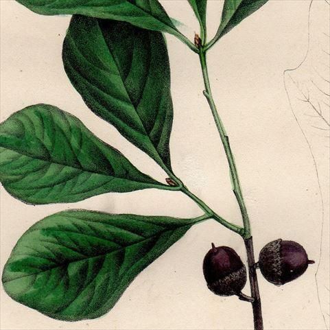 タイトルは「Water Oak. Quercus aquatica.」、現在使われている学名は「Quercus nigra」、