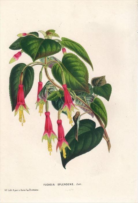 1849年 Van Houtte ヨーロッパの植物 アカバナ科 フクシア属 FUCHSIA SPLENDENS vanh342
