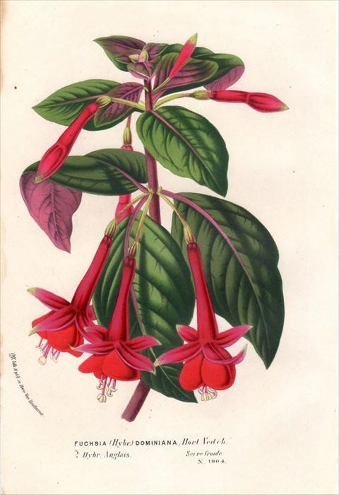 1854年 Van Houtte ヨーロッパの植物 アカバナ科 フクシア属 FUCHSIA (Hybr) DOMINIANA vanh559