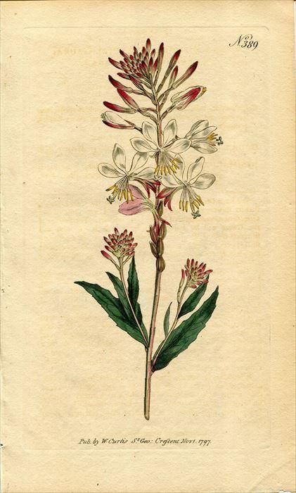 1797年 Curtis Botanical Magazine No.389 アカバナ科 ヤマモモソウ属 GAURA BIENNIS curbm389