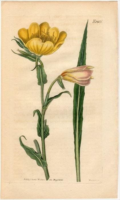 1823年 Curtis Botanical Magazine No.2403 アカバナ科 マツヨイグサ OENOTHERA ODORATA,β curbm2403