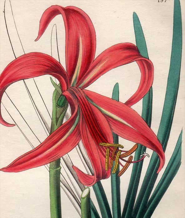 タイトルは「SPREKELIA GLAUCA.」、現在使われている学名は「Sprekelia formosissima」、