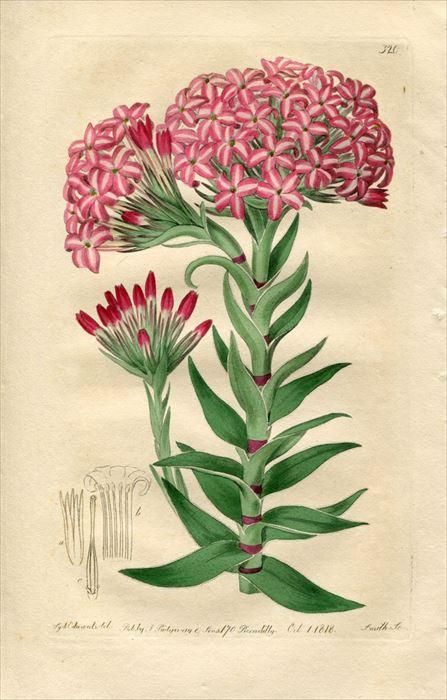 1818年 Edwards Botanical Register No.320 ベンケイソウ科 クラッスラ属 CRASSULA versicolor 多肉植物 edwbr320