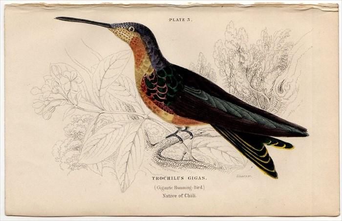 タイトルは「TROCHILUS GIGAS. Gigantic Humming Bird.」、