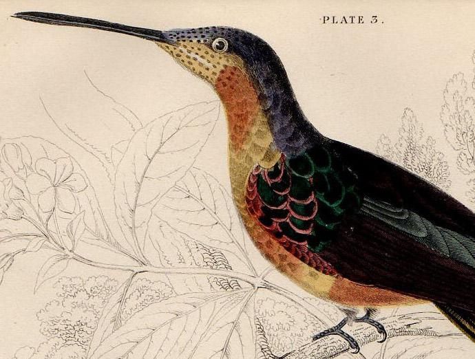 1865年 JARDINE NATURALIST'S LIBRARY 鳥類学 Pl.3 ハチドリ科 オオハチドリ属 オオハチドリ TROCHILUS GIGAS jardnat7-3