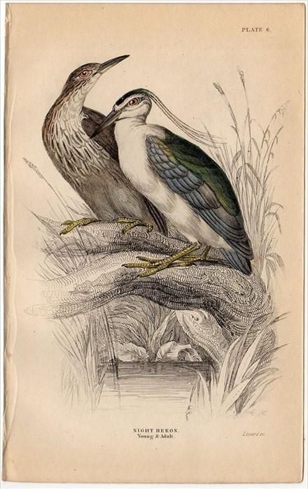 1839年 JARDINE NATURALIST'S LIBRARY 鳥類学 Pl.6 サギ科 ゴイサギ属 ゴイサギ NIGHT HERON jardnat3-6