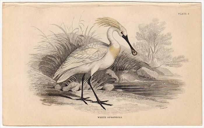1839年 JARDINE NATURALIST'S LIBRARY 鳥類学 Pl.8 トキ科 ヘラサギ属 ヘラサギ WHITE SPOONBILL jardnat3-8