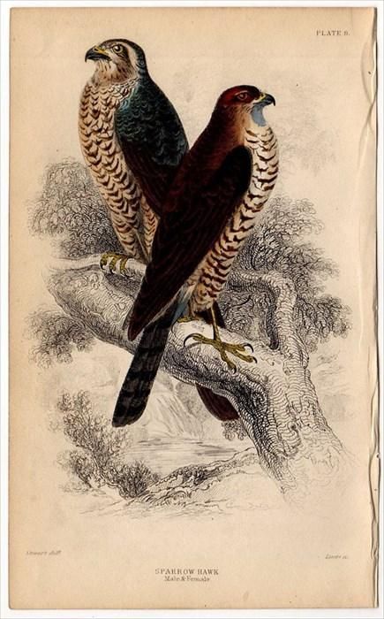 の単葉です。タイトルは「SPARROW HAWK. Male & Female.」、現在使われている学名は「Accipiter nisus」、