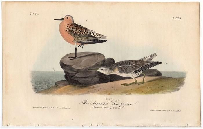 1840年 Audubon Birds of America Pl.328 シギ科 オバシギ属 コオバシギ Red-breasted Sandpiper audboa1840-328
