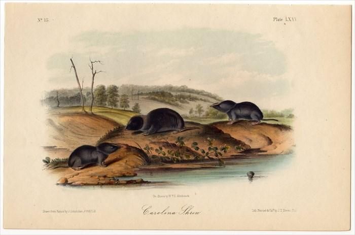 1851年 Audubon Quadrupeds of North America Pl.LXXV トガリネズミ科 トガリネズミ属 ブラリナトガリネズミ Carolina Shrew audqua75