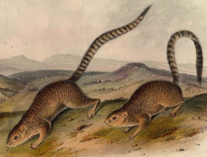1851年 Audubon Quadrupeds of North America Pl.LXXIX リス科 ジリス属 Annulated Marmot Squirrel audqua79
