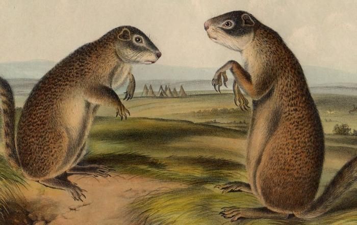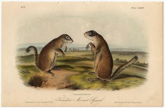 1851年 Audubon Quadrupeds of North America Pl.LXXXIV リス科 フランクリンジリス Franklin's Marmot Squirrel audqua84