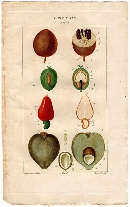 1815年 Chaumeton Flore medicale Pl.XXX Fruits ウルシ科 カシューナットノキ属 カシューナッツ 果実 flomed30