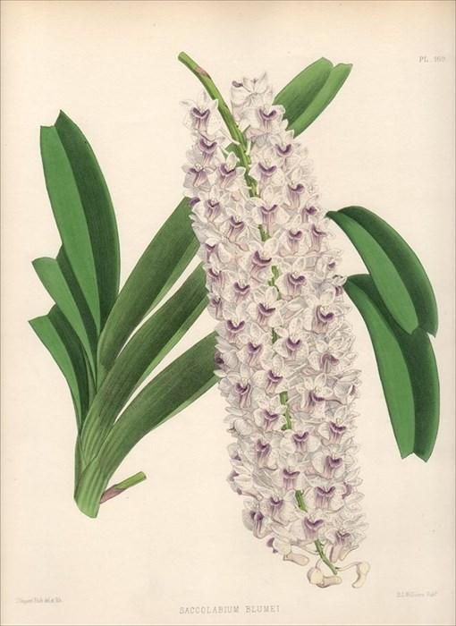 1885年 Warner Orchid Album Pl.169 ラン科 リンコスティリス属 SACCOLABIUM BLUMEI warneroa169