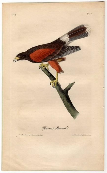 1840年 Audubon Birds of America Pl.5 タカ科 モモアカノスリ属 モモアカノスリ Harris's Buzzard audboa1840-5