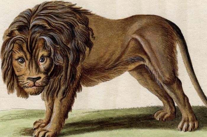 1780年 Schreber 野生哺乳類の図と説明 Pl.97a ネコ科 ヒョウ属 ライオン Felis leo Linn. Mas schre97a
