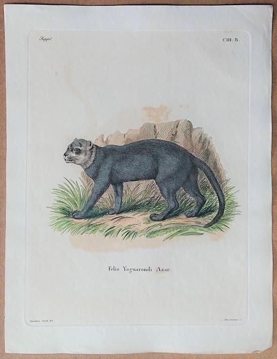1840' Schreber 野生哺乳類の図と説明 Pl.103b ネコ科 ヘルパイルルス属 ジャガランディ Felis Yaguarondi Azar schre103b