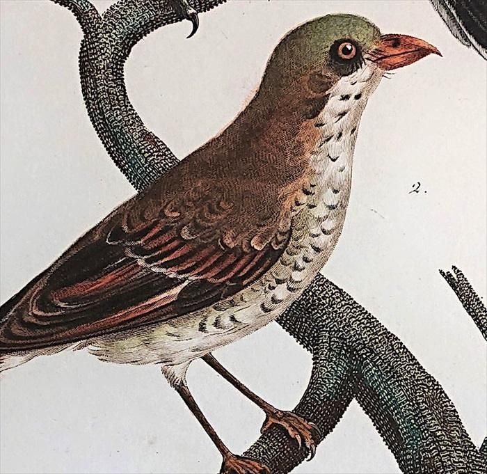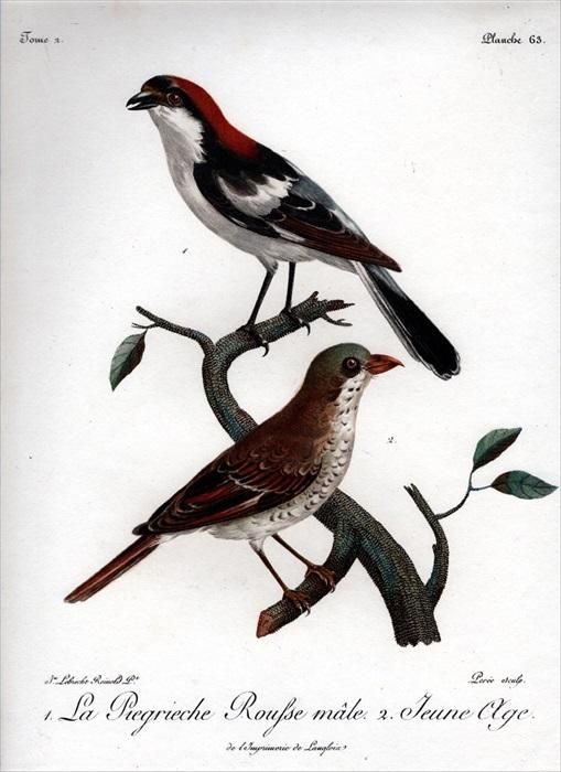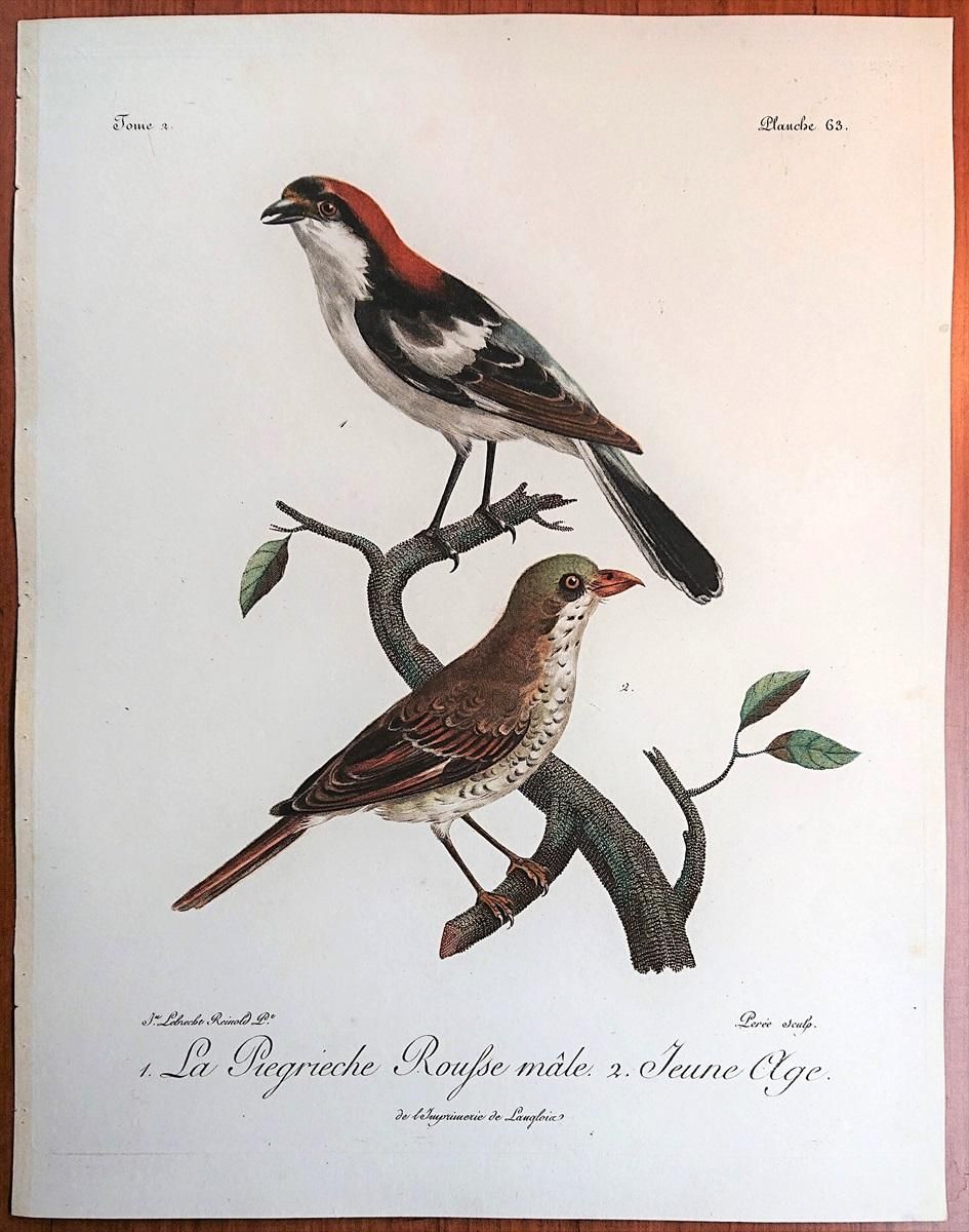 1799年 Levaillant アフリカ鳥類の自然史 2巻 Pl.63 モズ科 モズ属 ズアカモズ La Piegrieche Rousse 雄 若鳥 levaillant63