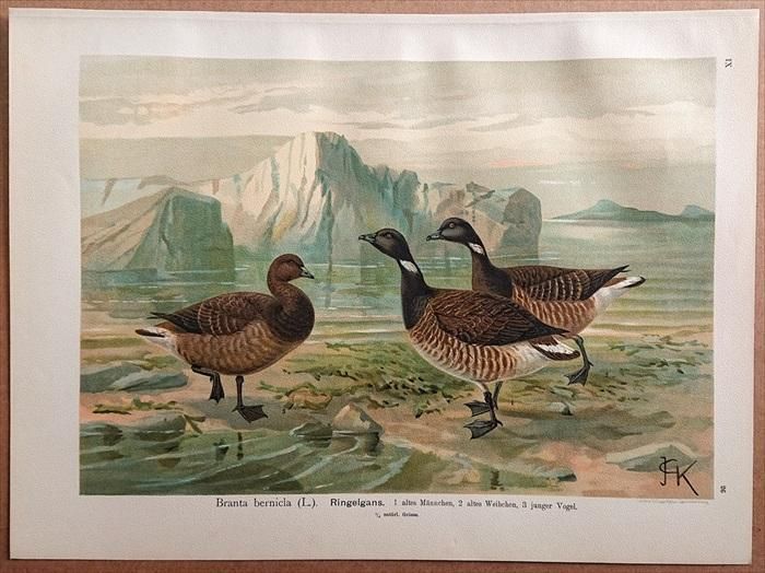 1902年 Naumann 中欧の鳥類の自然史 9巻 Pl.26 カモ科 コクガン属 コクガン 雄 雌 成鳥 若鳥 naumann9-26