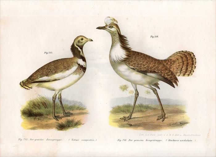 1864年 Fitzinger Bilder Atlas Fig.257 ノガン科 ヒメノガン Fig.258 ノガン科 フサエリショウノガン fitzin257