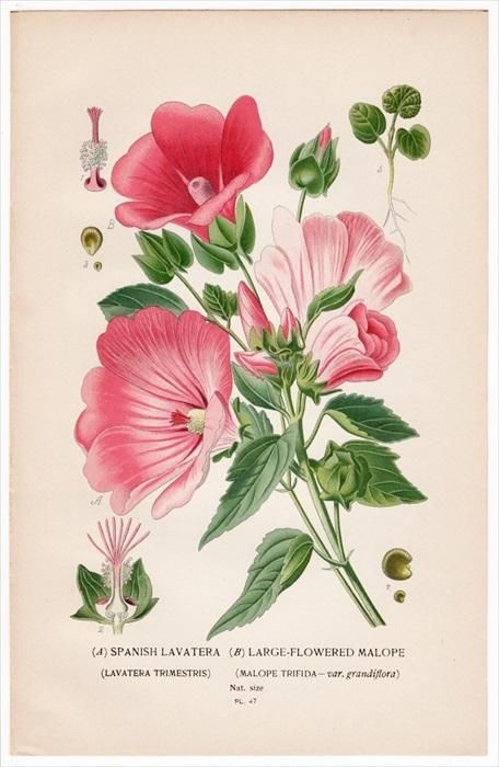 タイトルは「(A)SPANISH LAVATERA.(LAVATERA TRIMESTRIS) アオイ科 ハナアオイ属 ハナアオイ