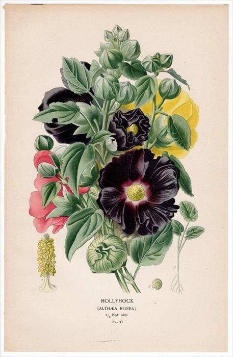1896年 Step 庭と温室のお気に入りの植物 Pl.51 アオイ科 ビロードアオイ属 タチアオイ HOLLYHOCK step51