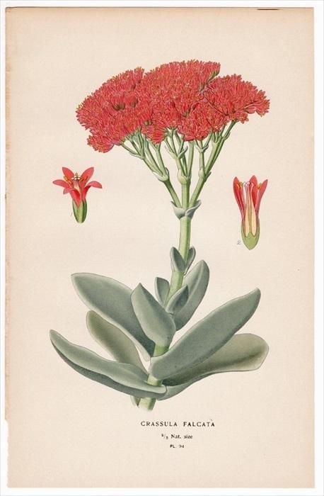 1897年 Step 庭と温室のお気に入りの植物 Pl.94 ベンケイソウ科 クラッスラ属 CRASSULA FALCATA 多肉植物 step94