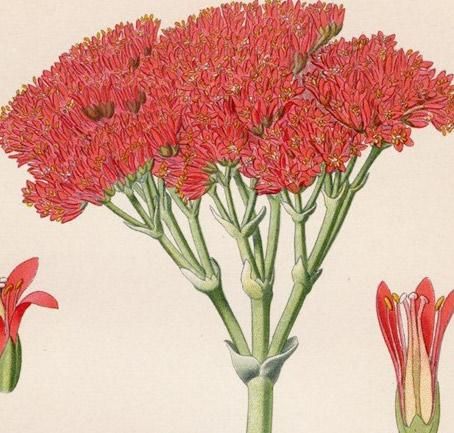 タイトルは「CRASSULA FALCATA.」、現在使われている学名は「Crassula perfoliata 」、