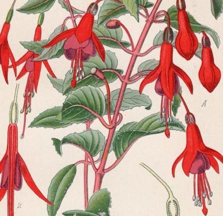 タイトルは「(A)FUCHSIA GLOBOSA.(=Fuchsia magellanica) アカバナ科 フクシア属