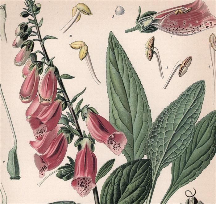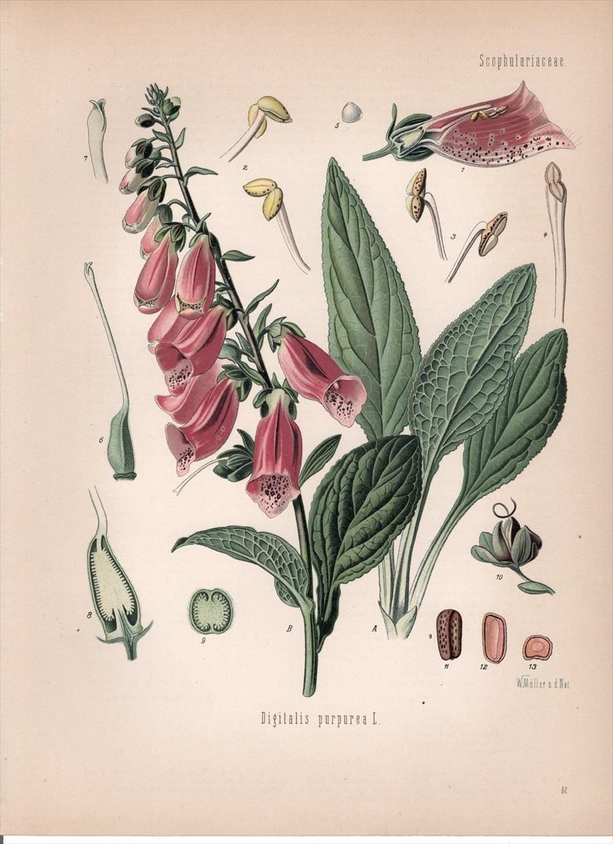 1887年 ケーラーの薬用植物 ゴマノハグサ科 ジギタリス属 キツネノテブクロ Digitalis purpurea L kohler64