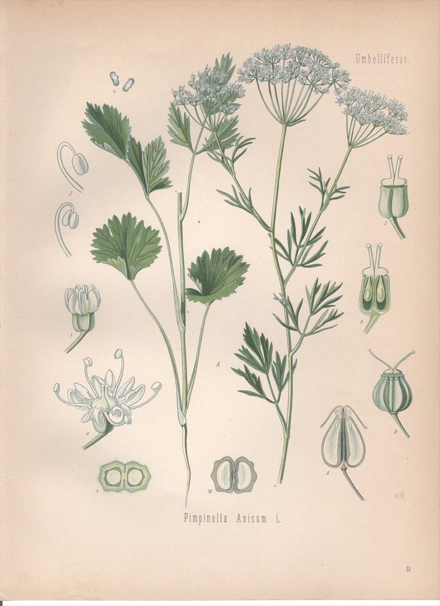 1890年 ケーラーの薬用植物 セリ科 ミツバグサ属 アニス Pimpinella anisum L kohler99
