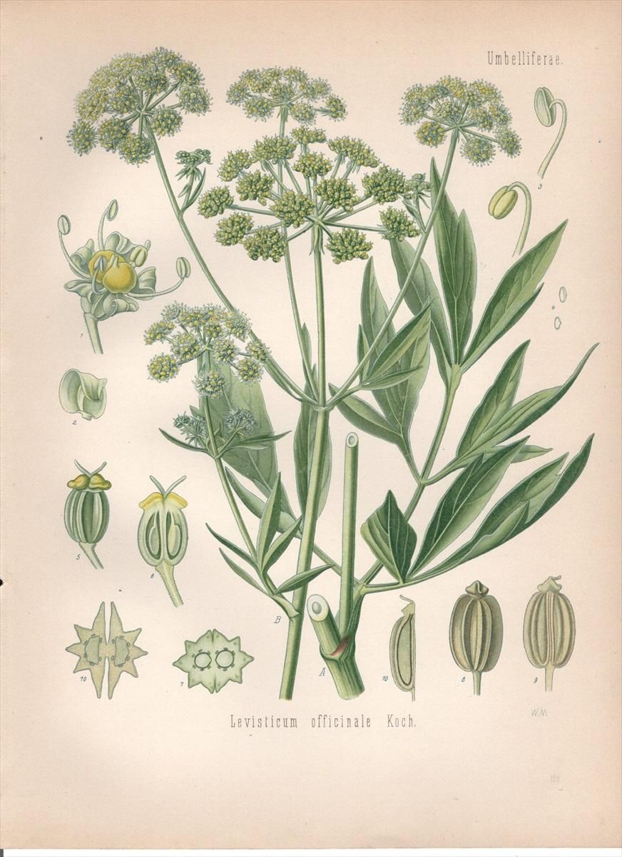 1890年 ケーラーの薬用植物 セリ科 レウィスティクム属 ラベージ Levisticum officinale Koch kohler127