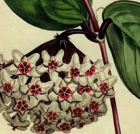 タイトルは「Asclepias carnosa.」、現在使われている学名は「Hoya carnosa」、