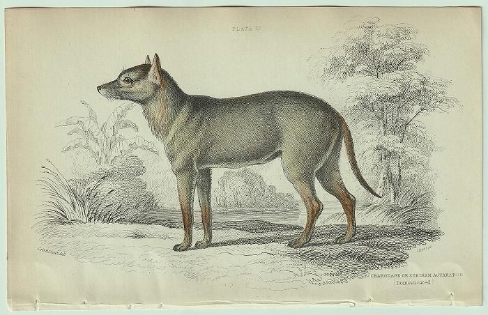 タイトルは「Crabodage or Surinam Aguara-Dog.」、現在使われている学名は「Cerdocyon thous」、
