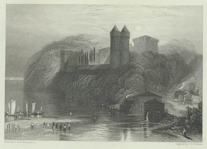 タイトルは「Tancarville.」、描画は J.M.W.Turner、版刻は J.T.Willmore、