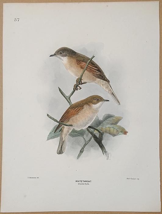1871年 Dresser ヨーロッパ鳥類史 Pl.57 ダルマエナガ科 クッルカ属 ノドジロムシクイ Whitethroat dress57