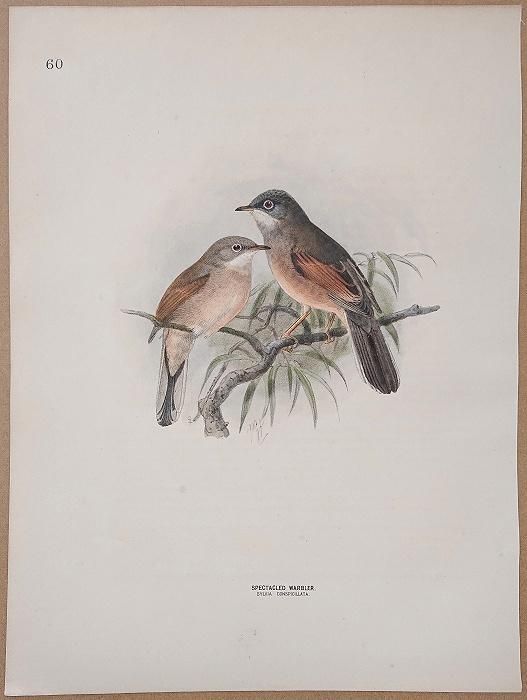 1871年 Dresser ヨーロッパ鳥類史 Pl.60 ダルマエナガ科 クッルカ属 ミナミノドジロムシクイ Spectacled Warbler dress60