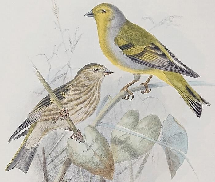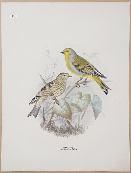 1871年 Dresser ヨーロッパ鳥類史 Pl.168 アトリ科 マヒワ属 シトロンヒワ Citril Finch dress168