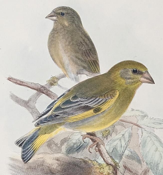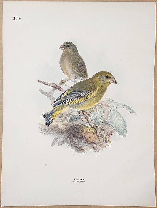 1871年 Dresser ヨーロッパ鳥類史 Pl.174 アトリ科 カワラヒワ属 アオカワラヒワ Greenfinch dress174