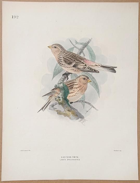 1871年 Dresser ヨーロッパ鳥類史 Pl.192 アトリ科 リナリア属 キバシヒワ亜種 Eastern Twite dress192
