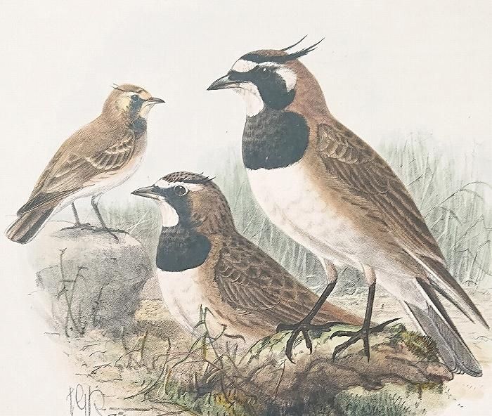 1871年 Dresser ヨーロッパ鳥類史 Pl.244 ヒバリ科 ハマヒバリ属 ハマヒバリ亜種 Southern Horned Lark dress244
