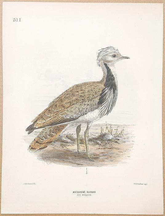 1871年 Dresser ヨーロッパ鳥類史 Pl.511 ノガン科 フサエリショウノガン属 サバクフサエリショウノガン Macqueen's Bustard dress511